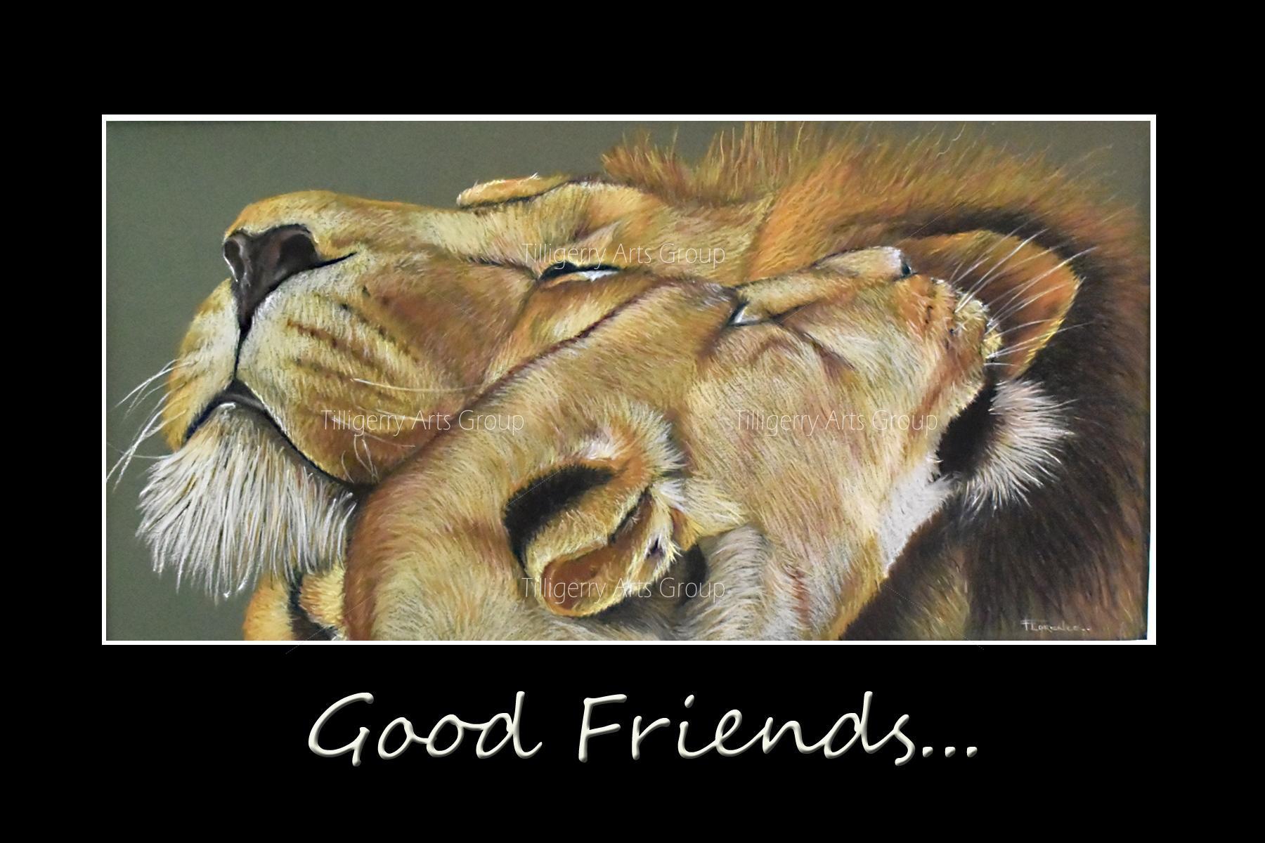 My 3 piece series on "Friends" was all about connections, the need to be connected. "New Friends", two juvenile Chimps who become friends clinging to one another for comfort. "Good Friends", two Lions connecting on the next level showing a connection deeper than that of friends, a real affection. "Old Friends", with the wisdom of their years these two Elephants have a bond that knows no time limits.